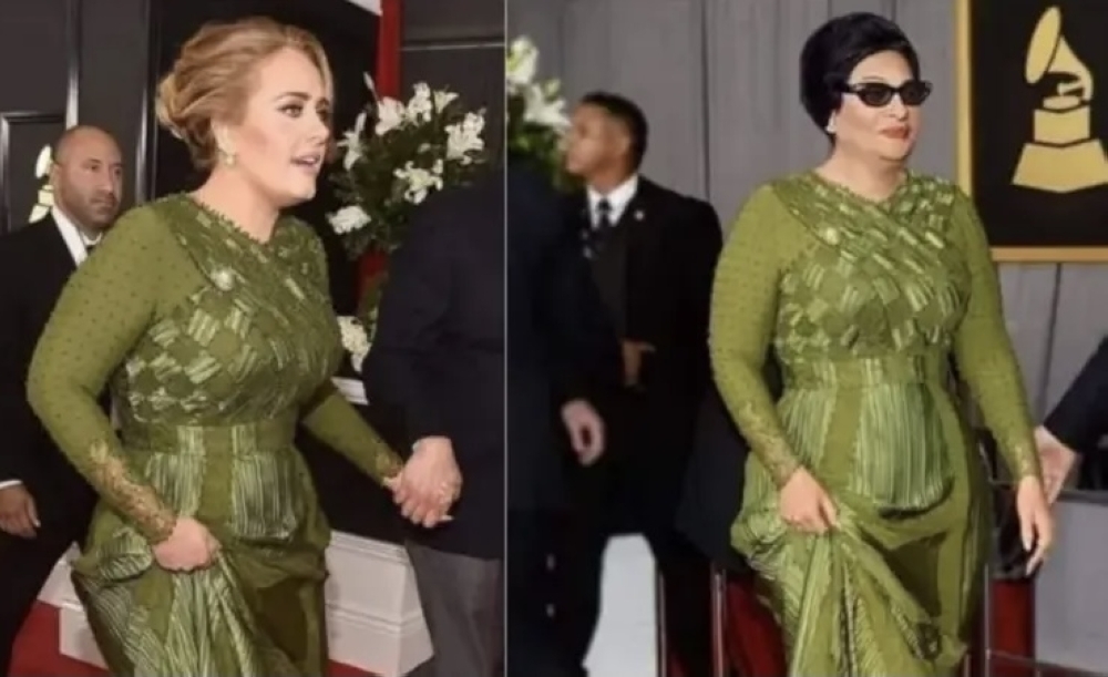 فيما جاء في التعليق المرافق: «الصورة للمطربة العالمية أديل ترتدي نفس فستان أم كلثوم ونفس الحذاء». إلا أن الادعاء غير صحيح، فصورة أم كلثوم مُركّبة، حيث كشف التفتيش عبر محركات البحث عن النسخة الأصلية منها والمنشورة على موقع وكالة غيتي، وفق وكالة «فرانس برس». ويمكن ملاحظة أنه تم التلاعب بالصورة وتعديلها واستبدال وجه أديل بوجه أم كلثوم، فقد نشرت وكالة غيتي عددًا من الصور تُظهر أديل تتألق بفستان أخضر خلال حفل توزيع جوائز غرامي سنة 2017.