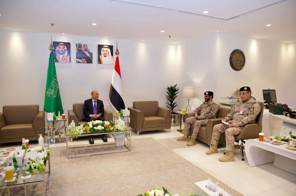 واطلع العليمي على جهود التحالف بقيادة المملكة العربية السعودية في دعم اليمن وشعبه وقيادته، واستمع إلى شرح تفصيلي لطبيعة المهام والموقف الراهن.