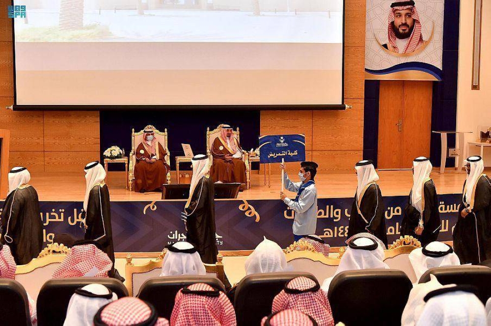 وتقع المدينة الجامعية بنجران على مساحة 18 مليون متر مربع، حيث تضم مجمعًا للطلاب يحتوي على 14 كلية، ومجمعًا للطالبات يحتوي على 14 كلية مجهزة بأحدث الخدمات التعليمية والصحية والتقنيات الحديثة والمرافق الخدمية لتصبح مدينةً جامعيةً شاملةً، حيث يدرس بها خاليًا أكثر من 20 ألف طالب وطالبة. كما تضم مستشفًى جامعيًّا بسعة 200 سرير، وسيستمر في التوسع حتى تصل سعته إلى 800 سرير بجميع العيادات التخصصية للرجال والنساء، وتجاوز عدد مراجعيه الربع مليون مراجع، كما أسهم في تقديم أكثر من 12 ألف جرعة من لقاح كورونا.