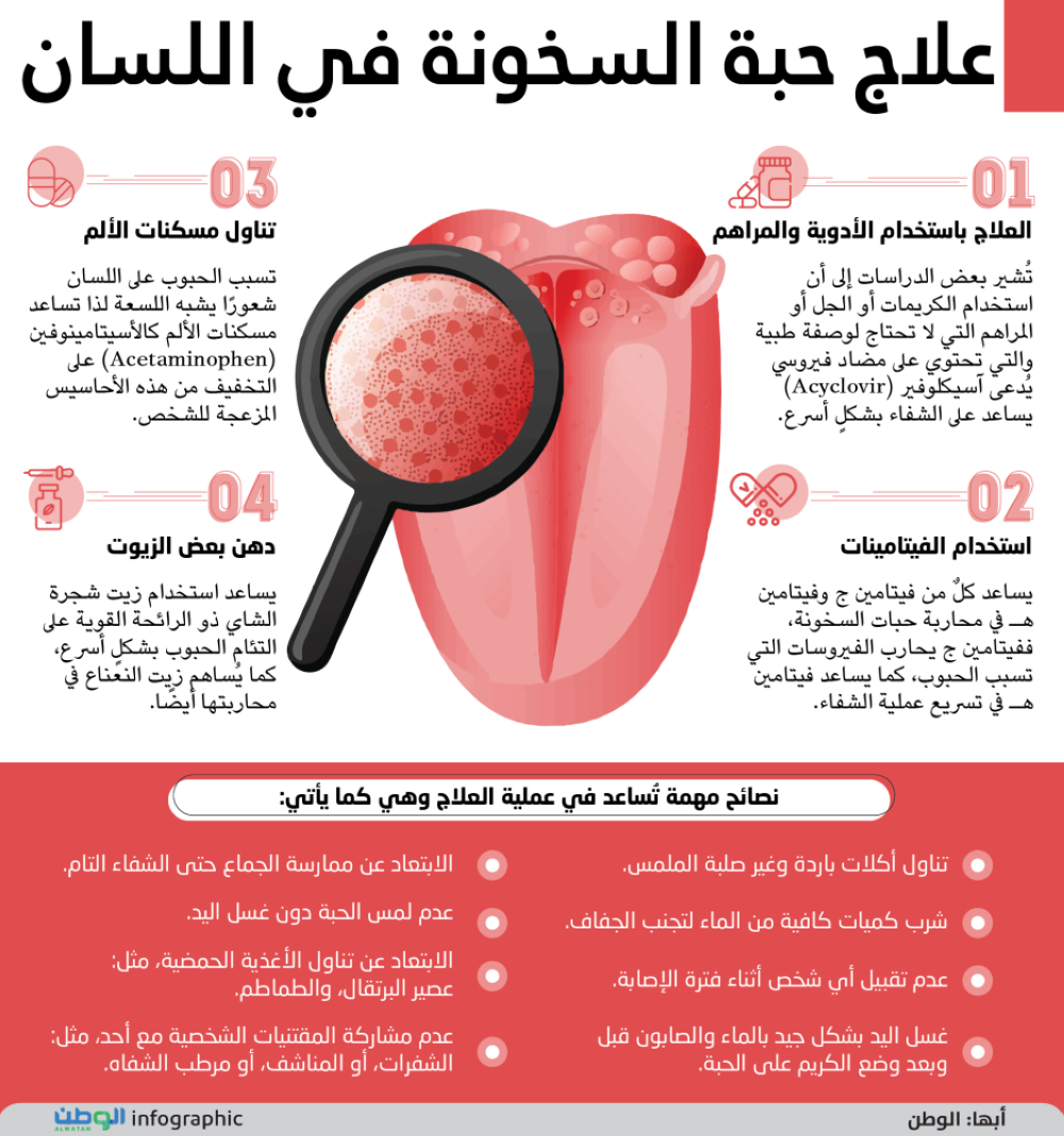 تسبب الحبوب على اللسان شعورًا يشبه اللسعة لذا تساعد مسكنات الألم كالأسيتامينوفين (Acetaminophen) على التخفيف من هذه الأحاسيس المزعجة للشخص.