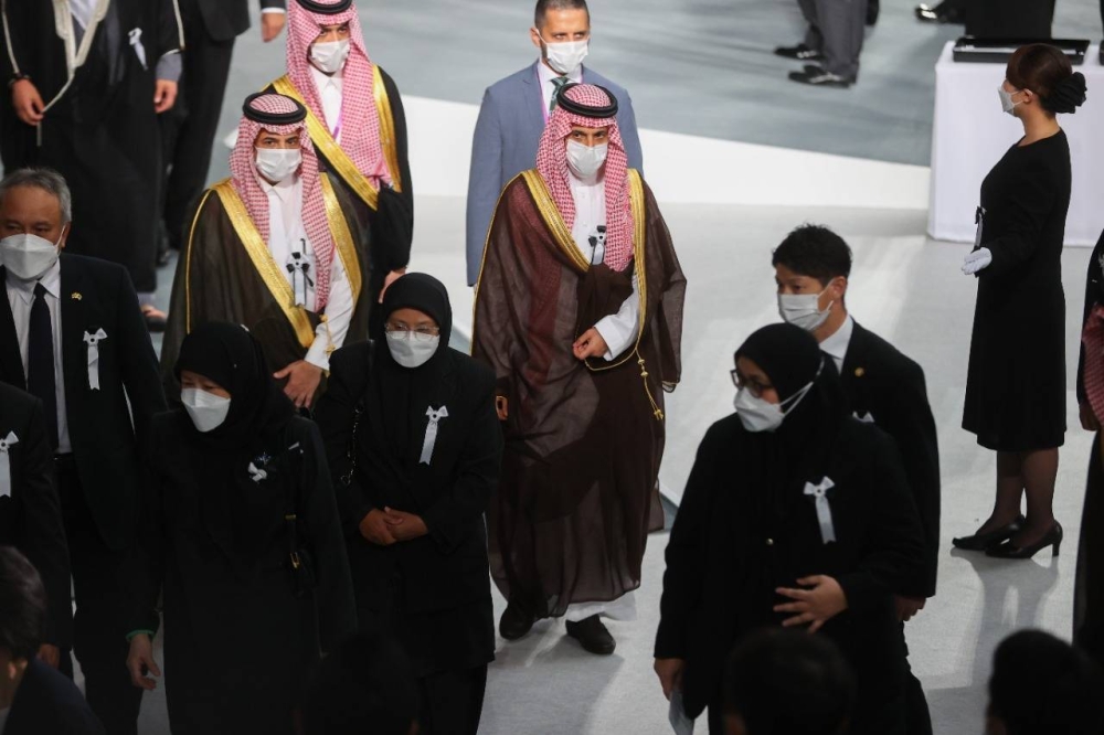 ونقل وزير الخارجية خلال مراسم العزاء، تعازي خادم الحرمين الشريفين الملك سلمان بن عبد العزيز آل سعود، وولي العهد نائب رئيس مجلس الوزراء الأمير محمد بن سلمان إلى رئيس وزراء اليابان فوميو كيشيدا، في وفاة رئيس وزراء اليابان السابق السيد شينزو آبي.