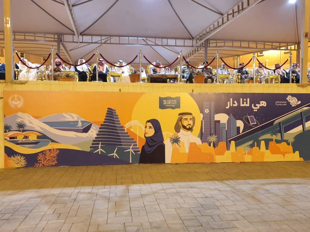راجياً من الله أن ينصر جنودنا الأبطال المرابطين على حدود الوطن ورجال أمننا الذين يذودون بأرواحهم لحماية دينهم ووطنهم ويحافظون على أمن هذا الوطن الغالي، وأن يديم على بلادنا أمنها واستقرارها وعزها في ظل القيادة الرشيدة، بعدها ألقى الشاعر الدكتور مرعي محمد آل عريعر قصيدة شعرية بعنوان «قدسيّة النفحات» تلى ذلك مشاهد وطنية لمناطق المملكة بعنوان (حب الوطن) قدمها طلاب الطفولة المبكرة، ثم استمع الجميع إلى ملحمة (شذراتٌ من ذهب) لأجل الوطن من كلمات الدكتور مرعي الوادعي وأداء المنشد مانع آل خرصان بمشاركة طلاب تعليم ظهران الجنوب، وشارك الحضور في الأداء، ثم قصيدة وطنية للشاعر عوض مجثل الوادعي، فأوبريت ظهران الجنوب للفرق الشعبية بالمحافظة من كلمات وأداء شاعر ظهران الجنوب جبران جابر المسعودي بمشاركة الفرقة الشعبية بالمحافظة، ثم أُطلقت الألعاب النارية.