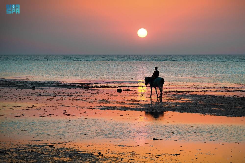 تنفرد سواحل منطقة تبوك الممتدة على مسافة تقارب 700 كم بتضاريسها البحرية، بأجمل المناظر والمشاهد التي غدت مقصدًا سياحيًا مهمًا لزوارها من محبي الاسترخاء والهدوء، حيث تقدم لهم تجارب نوعية مثل مشاهدة الغروب في أوقاته التي تمتزج برمال البحر وأمواجه. (واس)