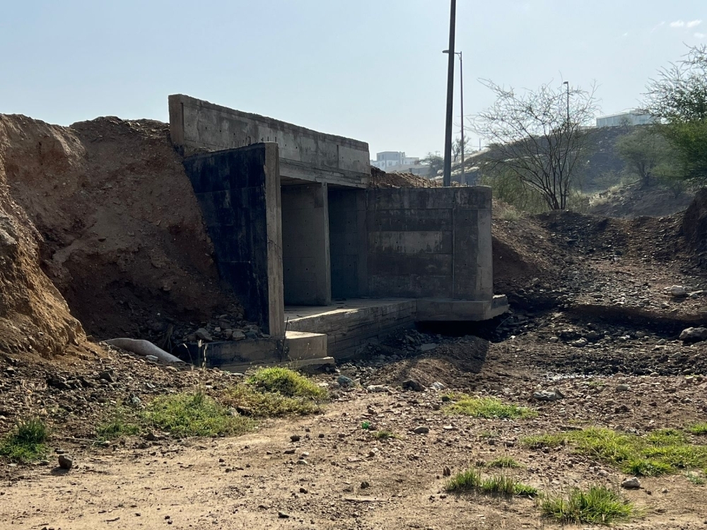 وأضاف محمد القرني أن مشروع العبارة يحتاج صيانة، حيث بدأت مياه السيول تجرف ما حولها من ردميات ترابية وانكشفت أجزاء منها.