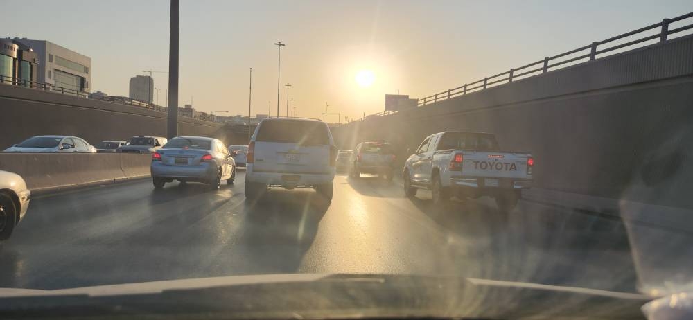 ويعد طريق خريص، الذي يمتد من شرق الرياض لغربها، من أكثر طرق الرياض ازدحاما، خصوصا في أوقات الذروة مثل موعد خروج المدارس والموظفين، إلا أنه اليوم وتحديدا عند الساعة الثانية ظهرا، والتي عادة ما يكون الطريق في أقصى ذروة له بازدحام السيارات، كانت القيادة فيه أسرع بشكل نادر، وذلك للعدد القليل من السيارات التي تمر في الطريق.