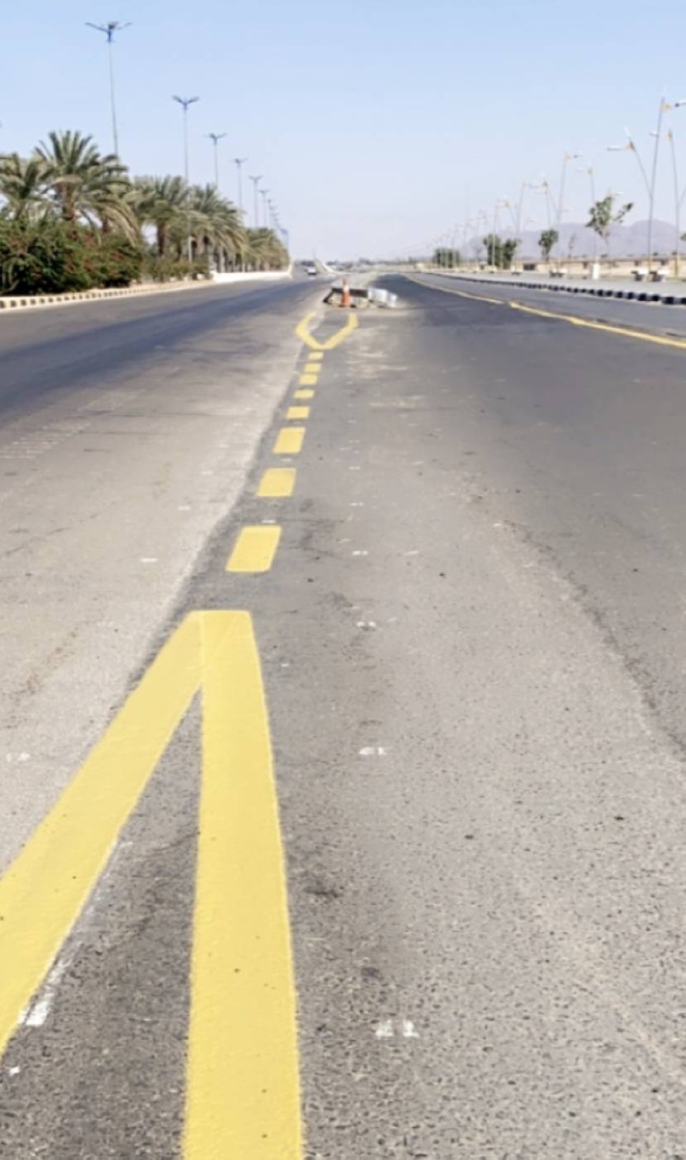 وقامت وزارة النقل فرع منطقة نجران بمعالجة الوضع كحل احترازي ومؤقت، بوضع الدهانات العاكسة لتكون وظيفتها تحديد المسار، إذ تعتبر من العلامات التحذيرية والإرشادية في أنظمة المرور، كتنبيه وتحذير لأصحاب المركبات، بالالتزام بالمسار لسالكي الطريق الرئيسي والأيمن لسالكي طريق الخدمة.