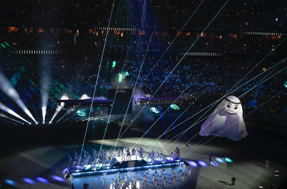 أقيم الافتتاح بإستاد البيت، بتصميمه المستلهم من الخيمة البدوية التقليدية، ومزج الحفل بين التقاليد العربية والثقافة العالمية، ويتصدر أحد أعضاء فرقة البوب الكوري الشهيرة «بي تي إس».