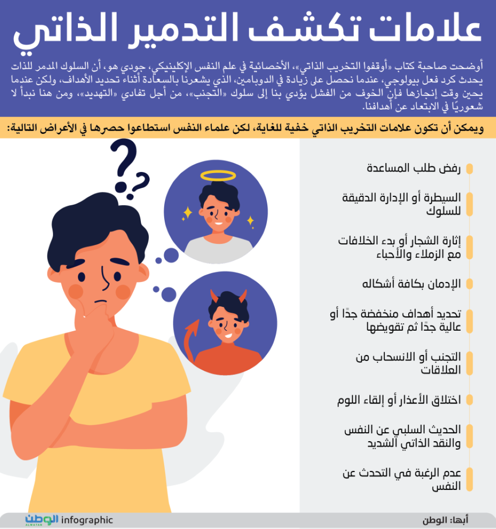 ويمكن أن تكون علامات التخريب الذاتي خفية للغاية، لكن علماء النفس استطاعوا حصرها في الأعراض التالية: