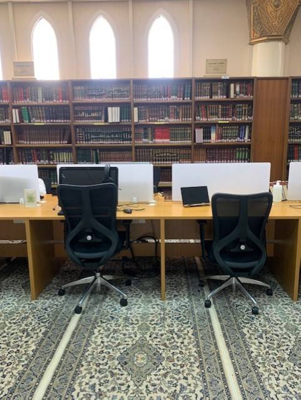 ودشنت وكالة شؤون المسجد النبوي المكتبة أخيرا مشروع المكاتب الذكية للباحثين والزوار بخمسين مكتب، مزودة بـ 50 كرسيا طبيا، وذلك للتسهيل للباحثين وطلاب العلم والزوار للوصول لطلباتهم عبر الوسائل التقنية، للمساهمة في رقي الخدمات المكتبية وضمن إطار التحول الرقمي وأنسنة الخدمات المقدمة للزائرين في المكتبة الرقمية الذكية.