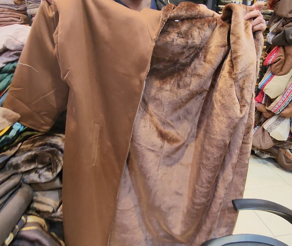 وهناك أيضا البشت المسمى البرق، وهو يأتي عادة بلونين وتتراوح أسعاره من 800 ريال وصولا إلى 2500 ريال، بينما الفروة الطفيلي قد يصل سعرها إلى 6000 ريال، وتسمى فروة الخرز، وبين أن سعر الفروة يكون في الجلد نفسه وهو الذي يتحكم بالسعر، ويرفع سعر الفروة أو يخفضها.