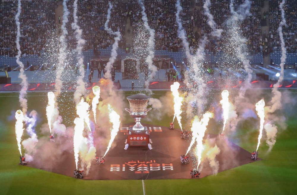 شهد إستاد الملك فهد الدولي، افتتاح منافسات كأس السوبر الإسباني، التي تقام بمشاركة 4 فرق، ه ريال مدريد وبرشلونة وريال بيتيس وفالنسيا.وشهد حفل الافتتاح الذي أقيم قبل انطلاق مباراة ريال مدريد وفالنسيا، عروضا نارية أحاطت بالمجسم الضخم الخاص لكأس السوبر الإسباني، وسط تفاعل كبير من الجماهير الحاضرة في المدرجات.