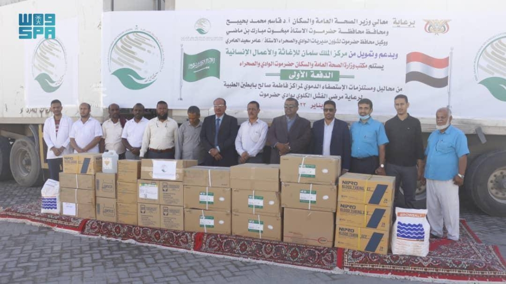 كما سلّمت المملكة مركز الكلية الصناعية، بمستشفى الشحر العام بمحافظة حضرموت، محاليل ومواد الغسيل الكلوي، وذلك ضمن إطار حرص المركز على استمرار خدماته الإنسانية، المقدمة لمرضى الفشل الكلوي باليمن.
