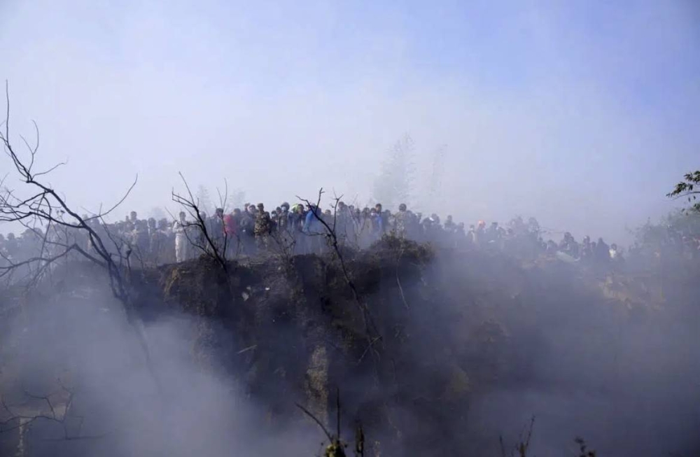 وأظهرت الصور ومقاطع الفيديو، التي تم تداولها على تويتر أعمدة من الدخان تتصاعد من موقع التحطم بينما تجمع عمال الإنقاذ والجنود النيباليون وحشود من الناس، حول حطام الطائرة للعثور على ناجين.