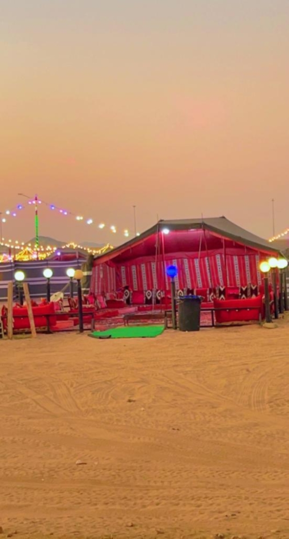 وهناك مخيمات للعائلات كما أن هناك مخيمات للنساء وكذلك مخيمات خاصة للرجال أو الشباب يوجد بها شاشات تلفزيونية تنقل القنوات الفضائية لمتابعة مباريات كرة القدم منها ما يتميز بمواصفات عالية الجودة تترواح الليلة من 800 إلى 1000 ريال، حسب أيام الأسبوع، تشمل جلسات أرضية ودورات مياه وحفرة طبخ المندي ومنقل حطب وشباك كرة الطائرة وطاولات لعبة الكيرم وبلوت، ومنطقة ألعاب للأطفال رملية.