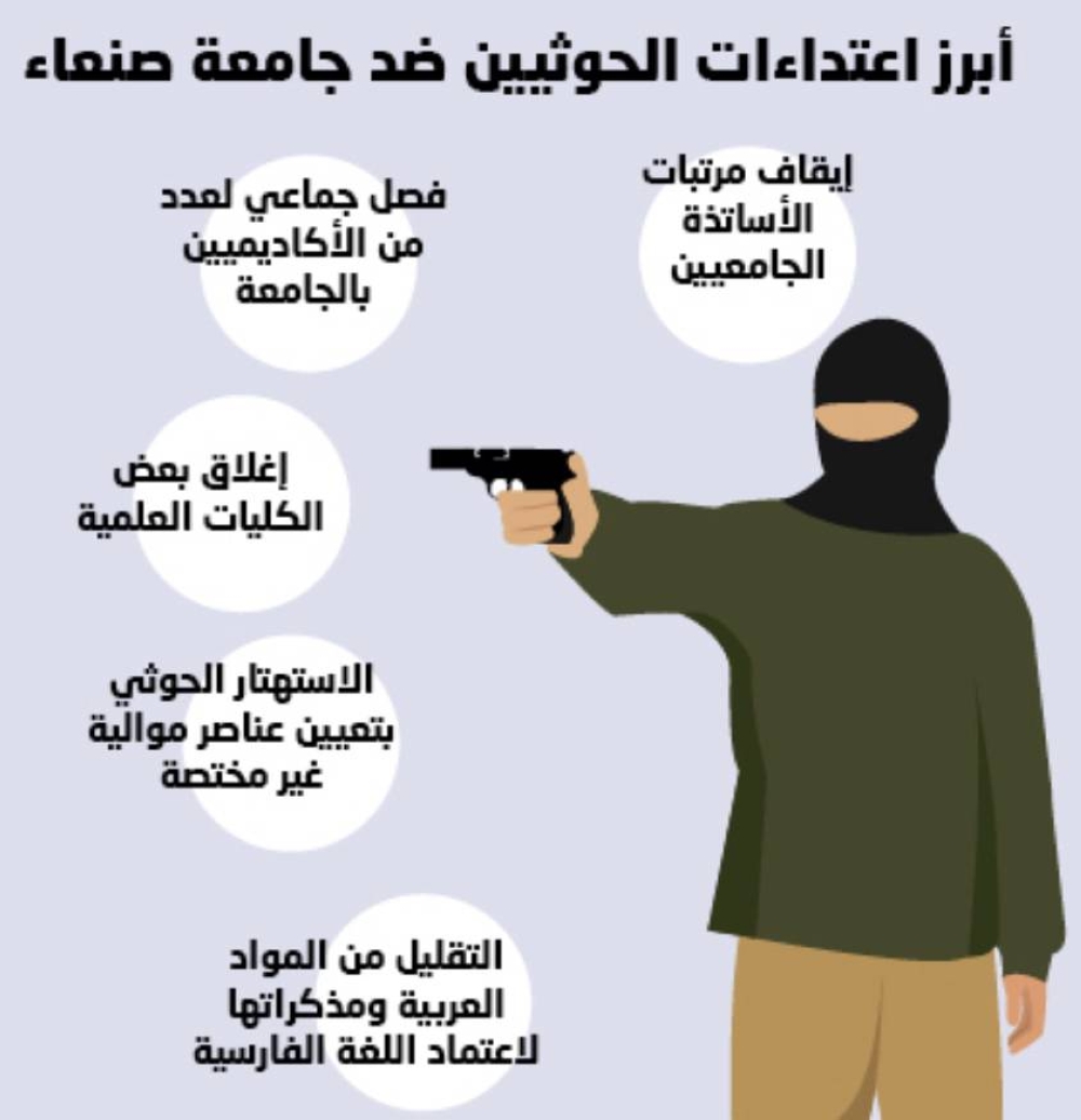 وأضاف أن الحوثيين بهذا الإجراء التعسفي يقتلون ويدمرون لغة القرآن الكريم ومسقط العروبة، وأكد أن عددا كبيرا من الطلاب واجهوا القرار بالرفض، الذي لايمكن أن ينظر له أو إليه، فيما خير الطلاب الباقون بين المواصلة مع الإجراء الجديد أو رفض البقاء بالجامعة، ومنع الطلاب الذين طالبوا بالتحويل لكليات أخرى من تحقيق رغباتهم، وإجبارهم على مواصلة تعلم الفارسية بشكل أوسع.