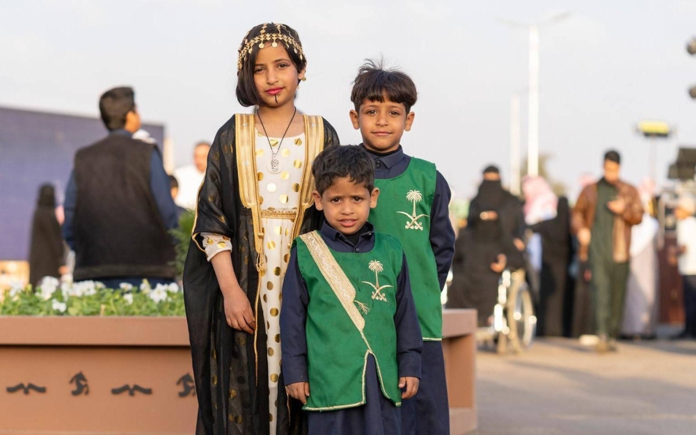 وتجسدت فرحة الأطفال بهذه المناسبة بتوشحهم بالزي التراثي السعودي القديم وهم حاملين الشعارات والأعلام السعودية، وسط شعور مفعم بالانتماء إلى هذا الوطن الغالي في يوم تأسيسه.