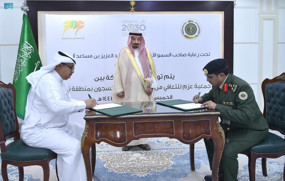 رعى أمير منطقة نجران الأمير جلوي بن عبدالعزيز بن مساعد، في مقر الإمارة، مراسم توقيع اتفاقية تعاون بين مديرية السجون بمنطقة نجران، وجمعية عزم للتعافي من الإدمان بالمنطقة، ووقع الاتفاقية مدير سجون نجران العميد بنيان العمر، ورئيس مجلس إدارة جمعية عزم للتعافي من الإدمان علي العلياني.