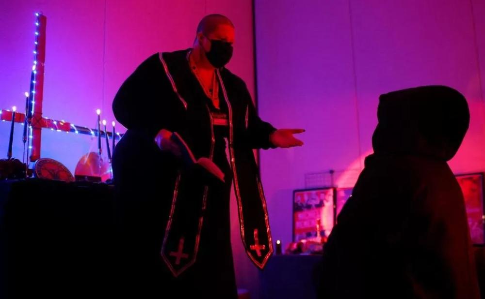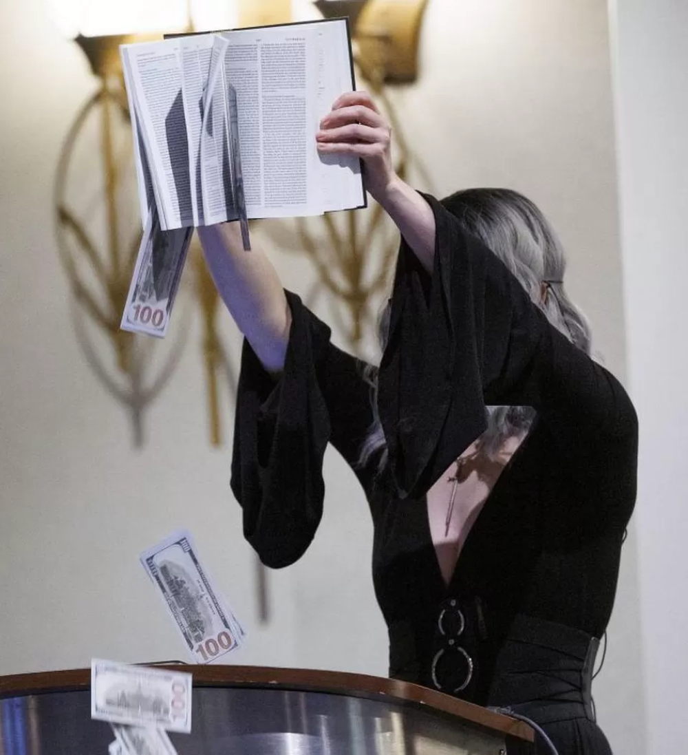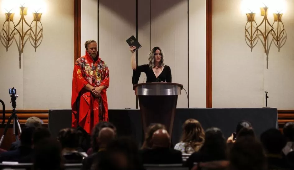 تضمن حفل افتتاح تجمع عبدة الشيطان في أمريكا صفحات ممزقة من الإنجيل - الأمر الذي أثار غضب الأمريكيين المسيحيين على الإنترنت.