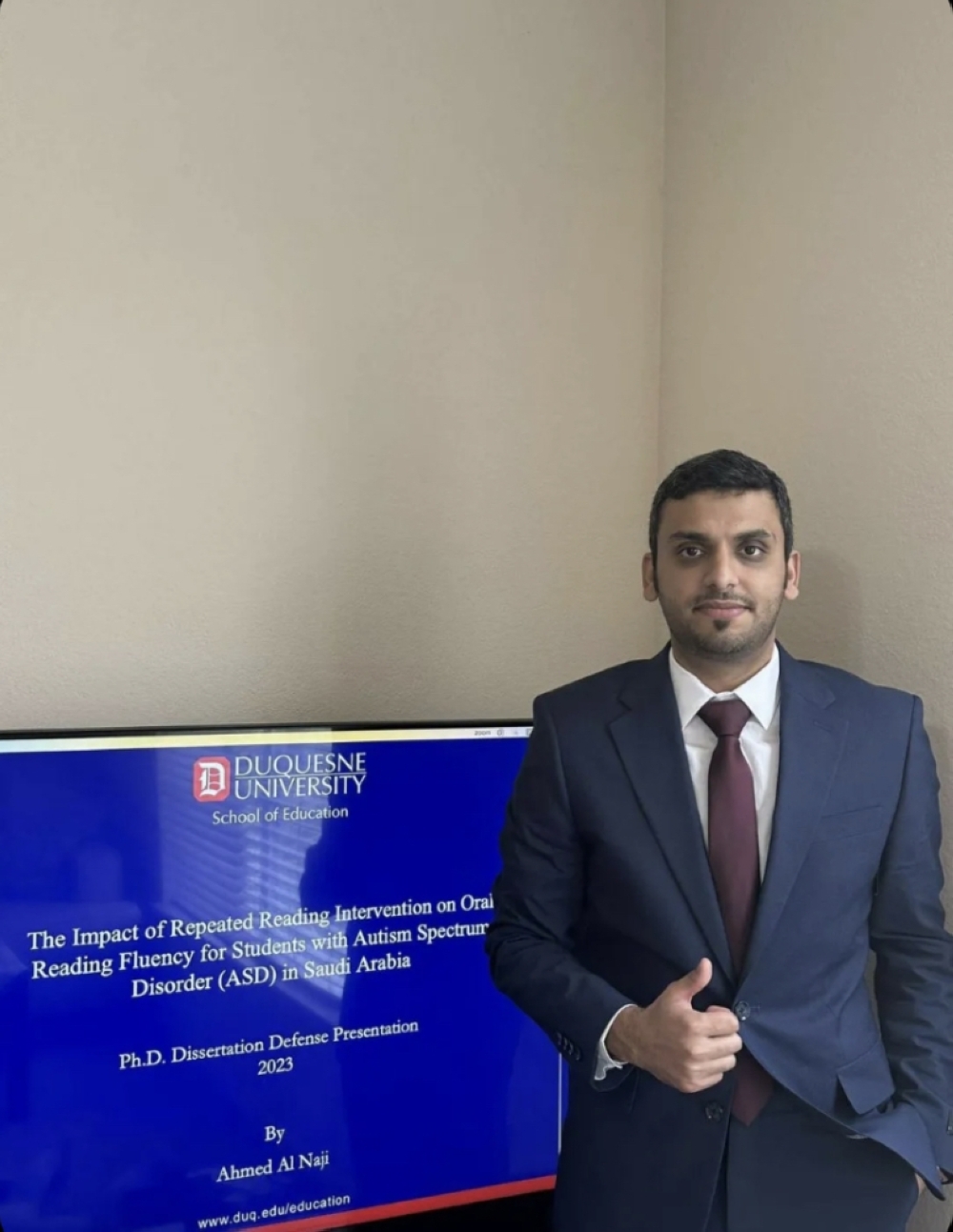 احتفل أحمد صالح آل ناجي بمنطقة نجران بحصوله على شهادة الدكتوراه من جامعة دوكين بالولايات المتحدة الأمريكية في مجال التربية الخاصة، وتلقى آل ناجي التهاني والتبريكات من الأهل والأقارب والأصدقاء والعديد من الزملاء.