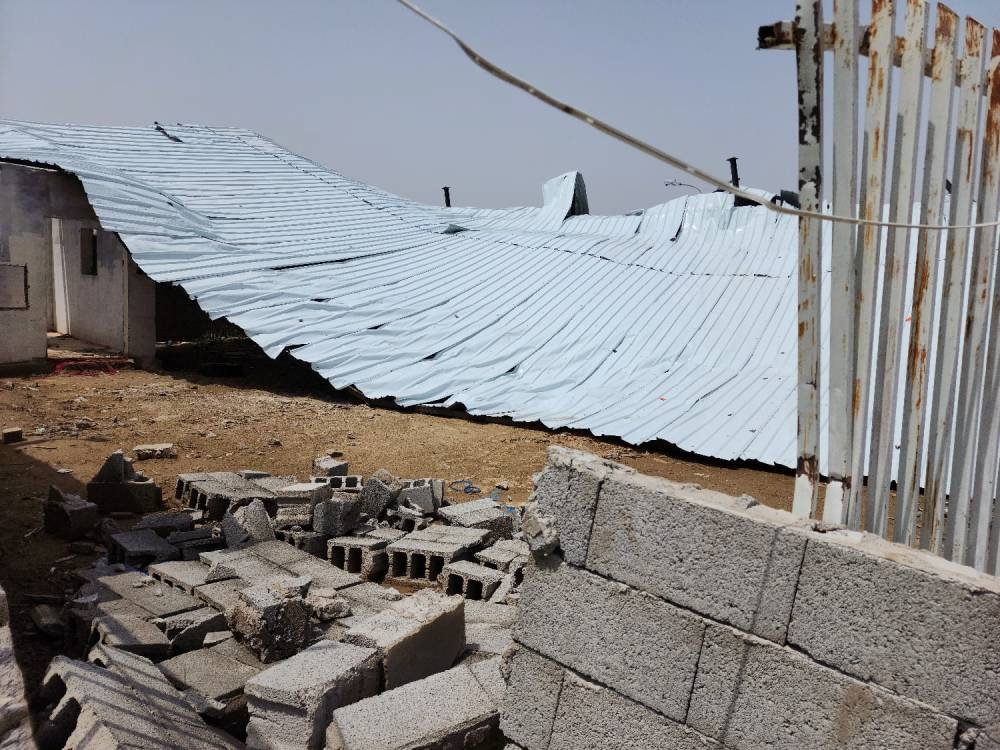 وقال محمد مغوي الحدري إن فناء منزله سقط من أضرار "إعصار الدرب" على حسب وصفه، مؤكدا زيارة الدفاع المدني له وسجلوا الأضرار.