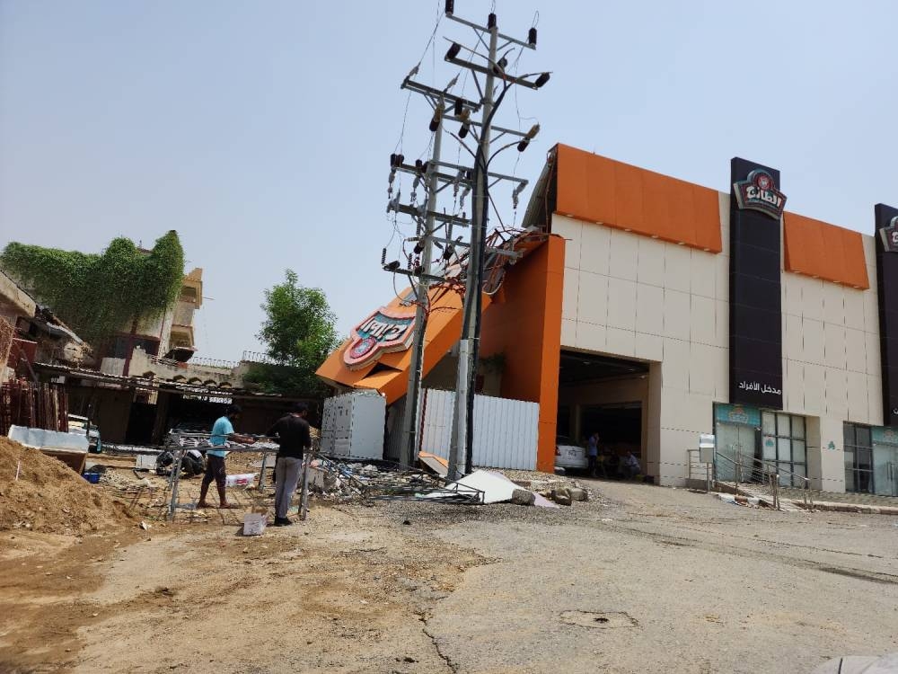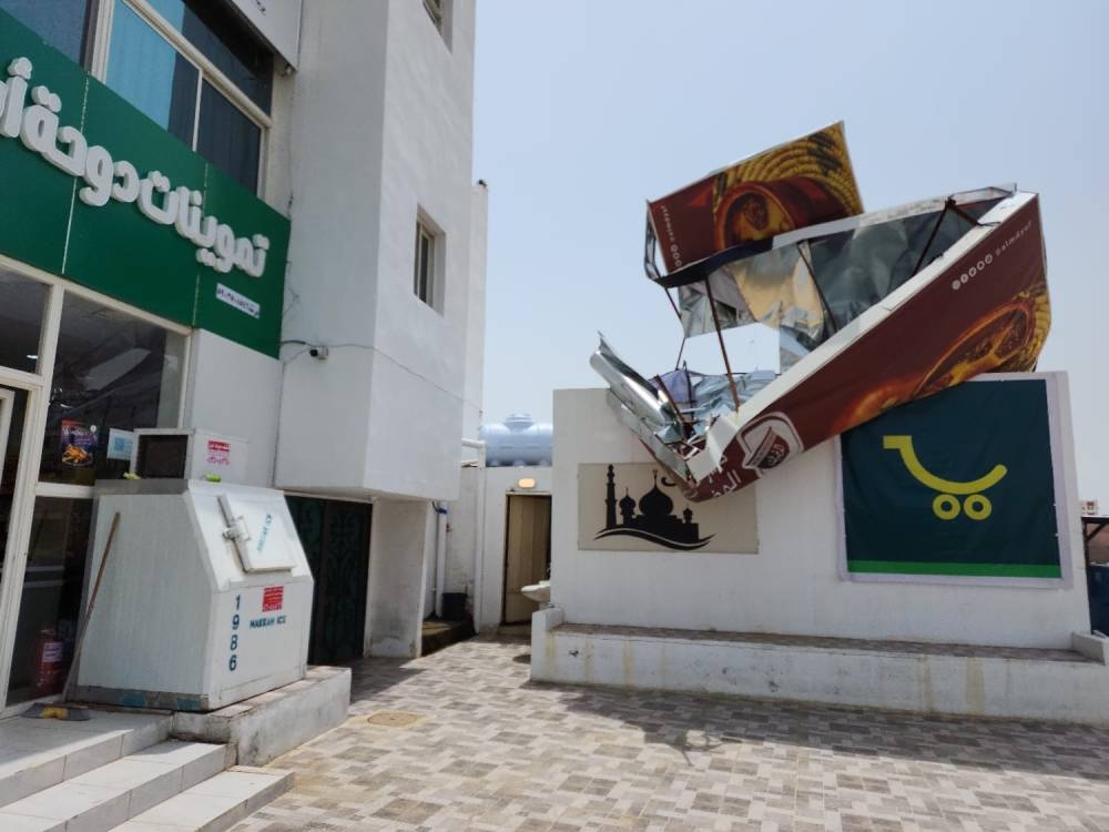 ومع إشراقة صباح اليوم قام أصحاب المحلات التجارية بالاستنفار لإعادة واجهة المحلات التجارية التي سقطت نتيجة الرياح الشديدة ليواصلوا تشغيل محلاتهم التجارية.