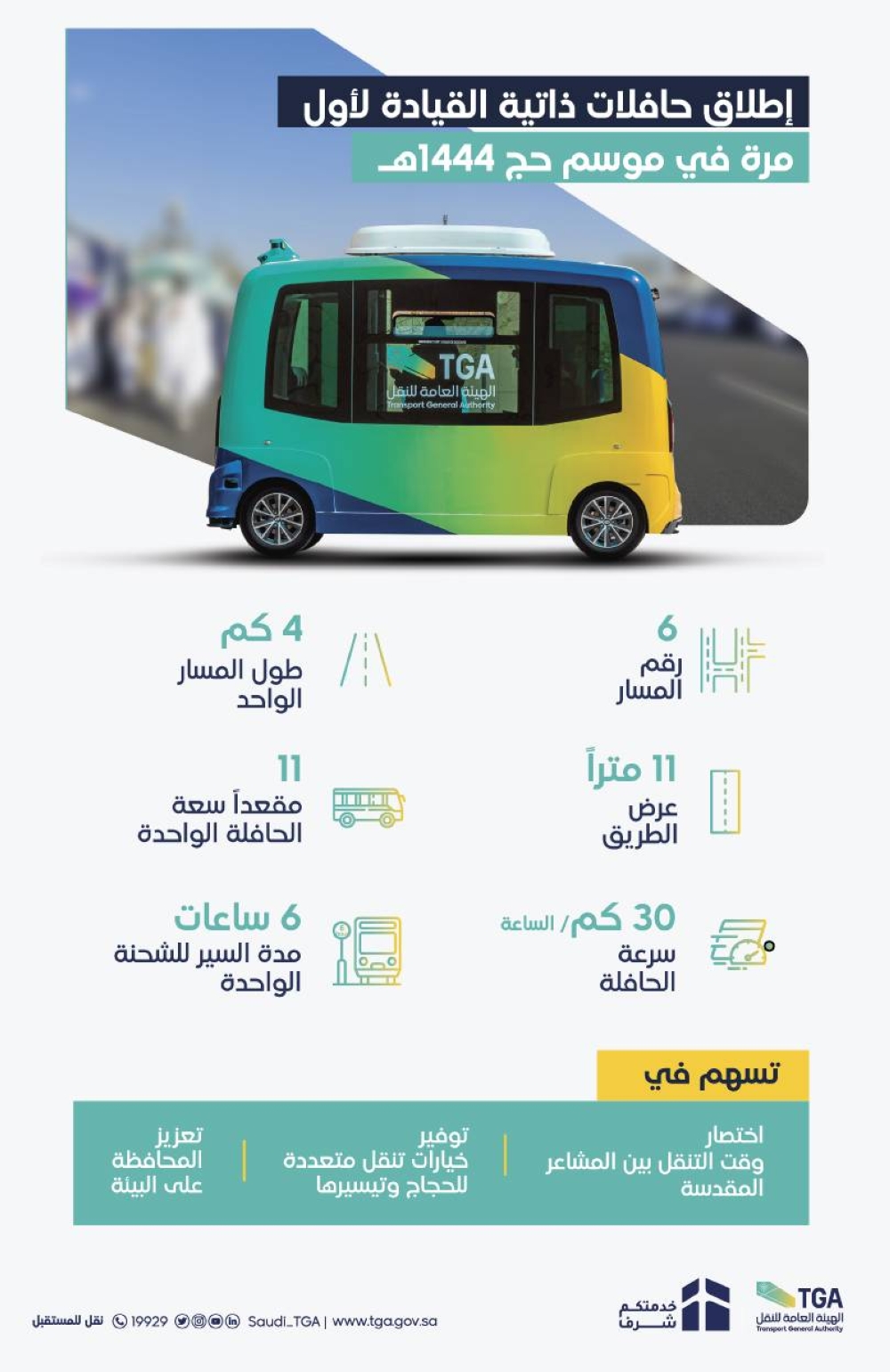 ويأتي ذلك ضمن دور الهيئة في توفير خيارات نقل مختلفة ومتنوعة، وتبني التقنيات الحديثة والتنقل الذكي لقياس مدى ملاءمتها ومساهمتها في توفير تجربة تنقل مميزة لضيوف الرحمن وضمان تنقلهم وأدائهم للمناسك براحة واطمئنان.