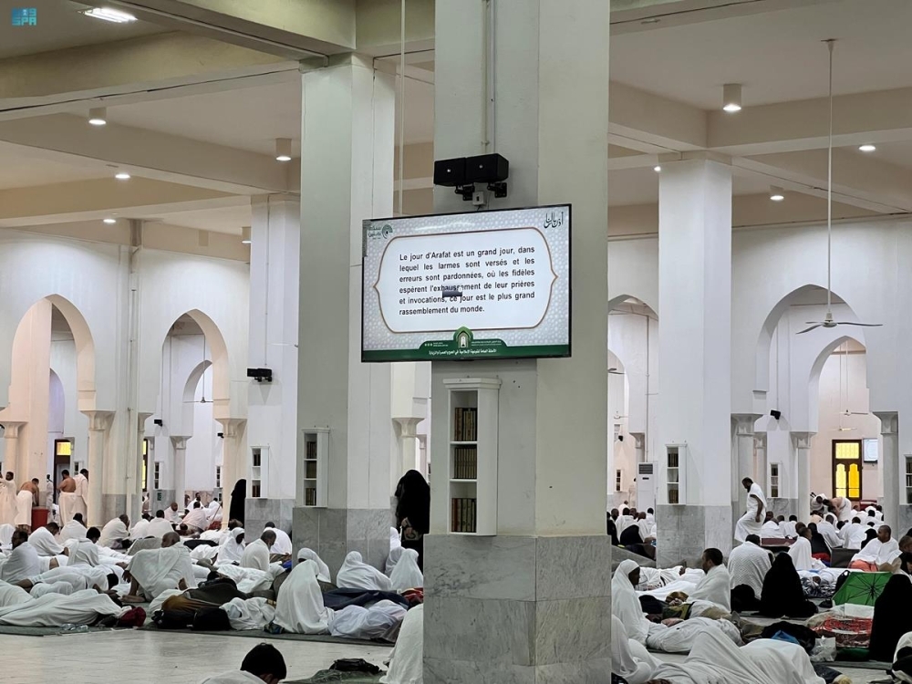 وفّرت وزارة الشؤون الإسلامية والدعوة والإرشاد ممثلة في الأمانة العامة للتوعية الإسلامية في الحج والعمرة والزيارة 9 كبائن للتوعية الإسلامية و 100 شاشة إلكترونية بعدة مواقع مختلفة بمشعر عرفات ومسجد نمرة، تسهم في توعية وإرشاد حجاج بيت الله الحرام كي يؤدوا مناسكهم بكل يسر وطمأنينة على هدي الكتاب والسنة النبوية المطهرة وتوجد في مشعر عرفات 3 مراكز للتوعية الإسلامية، ويبلغ إجمالي عدد الكبائن المنتشرة في عرفة 9 كبائن، 3 كبائن منها بمسجد نمرة، و 6 كبائن بمركز جبل عرفات، حيث يعمل فيها نخبة من الدعاة والمترجمين بلغات عالمية على مدار الساعة للرد على استفسارات الحجاج وتعليمهم المناسك على هدي القرآن والسنة. كما تم تفعيل خدمة الهاتف المجاني بلغات مختلفة، كما تم توفير 8 أجهزة آيباد لخدمة التوعية الشرعية والتي تتيح التواصل مع الداعية عبر الاتصال المرئي بثلاثين لغة مختلفة للرد على الأسئلة، كما يتم بث رسائل نصية sms إلى الهواتف النقالة للحجاج الحاضرين في مشعر عرفات.