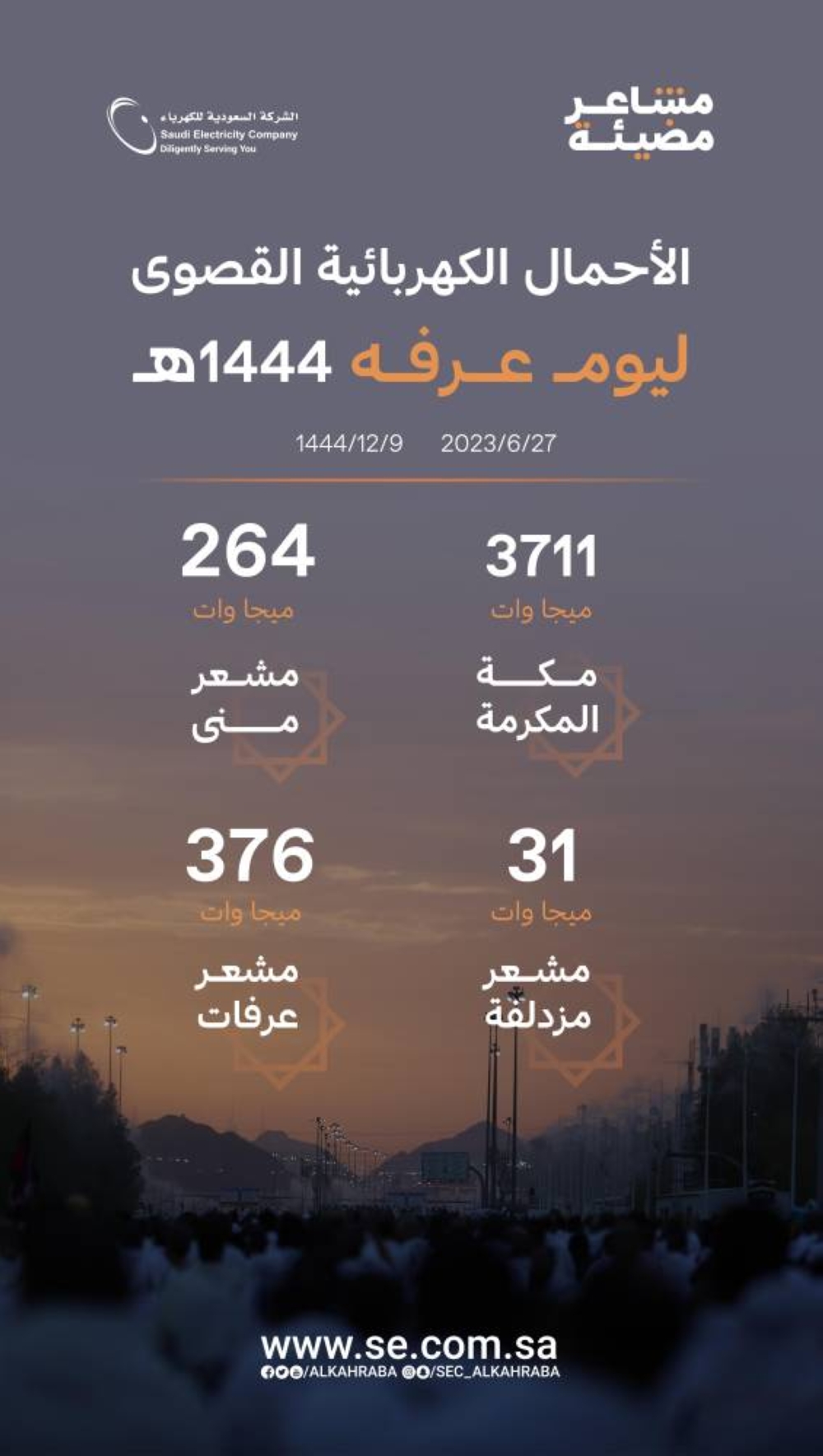 وأكدت الشركة أن الخطة التشغيلية للشركة هذا العام، تسير وفق ما هو مُخطط له بمتابعة وإشراف منظومة الطاقة بقيادة وزير الطاقة الأمير عبدالعزيز بن سلمان، مبينة أنها تسعى إلى تقديم خدمة كهربائية بمستوى عال من الموثوقية والكفاءة في الأداء في سبيل راحة حجاج بيت الله الحرام.
