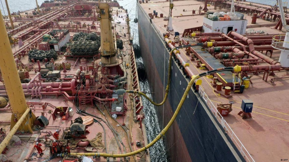وأعلنت الأمم المتحدة، أنه تم النقل من متن الناقلة «صافر» المهجورة قبالة ميناء الحُديدة اليمني في البحر الأحمر، إلى سفينة بديلة بعد نحو أسبوع من بدء عملية السحب.