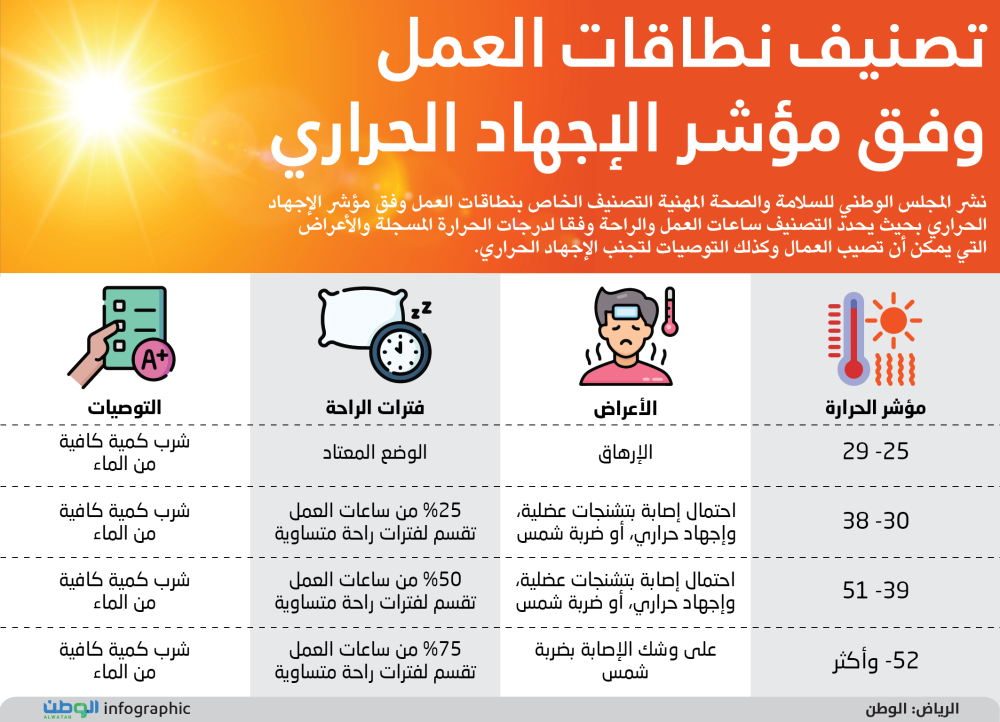 تصنيف نطاقات العمل وفق مؤشر الإجهاد الحراري