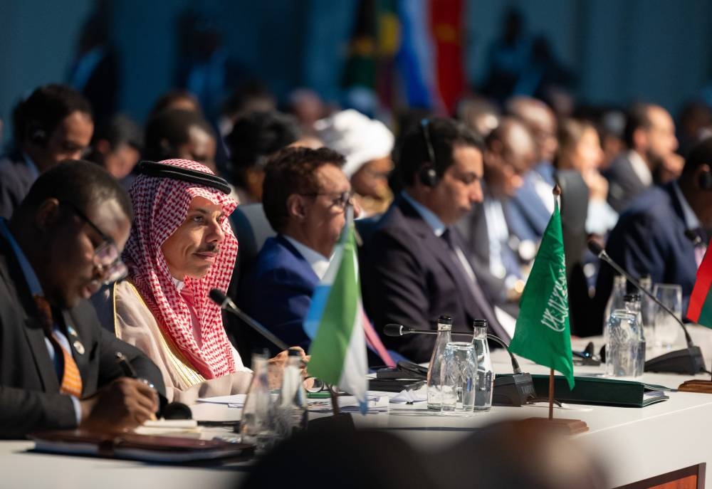 ونقل وزير الخارجية في بداية كلمة المملكة تحيات خادم الحرمين وولي العهد رئيس مجلس الوزراء، وعبر عن تقدير المملكة للجهود المبذولة من قبل فخامة الرئيس سيريل رامافوزا رئيس جمهورية جنوب أفريقيا لاستضافة وإنجاح هذه القمم.