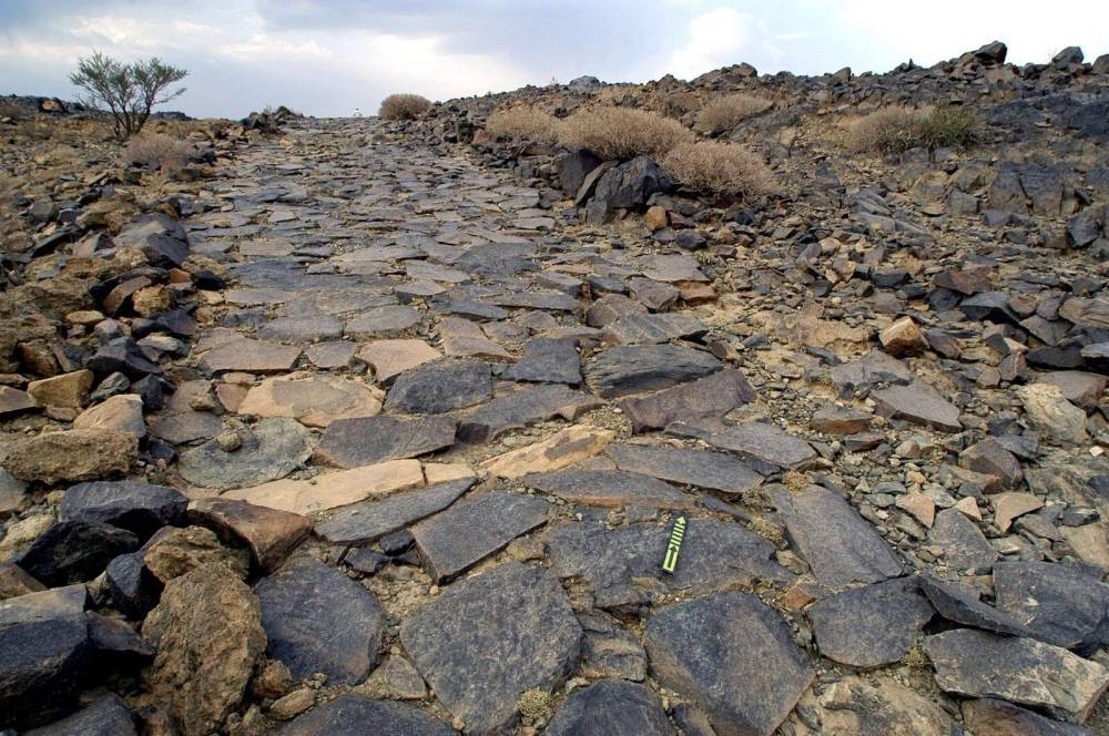 8- تقاطع طريق الحرير من الجنوب للشمال مع طريق الفاو جرش من الشرق للغرب، والمحاط بأرصفة حجرية ومنارات إرشادية عليها مواقد نار من قطران، وبها رماد.