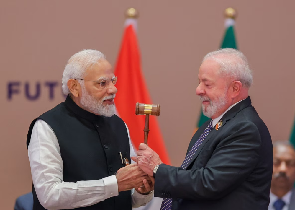 وسلم رئيس الوزراء الهندي ناريندرا مودي، في ختام القمة السنوية التي عقدت في نيودلهي، مطرقة رئاسة مجموعة العشرين إلى الرئيس البرازيلي لولا دا سيلفا.