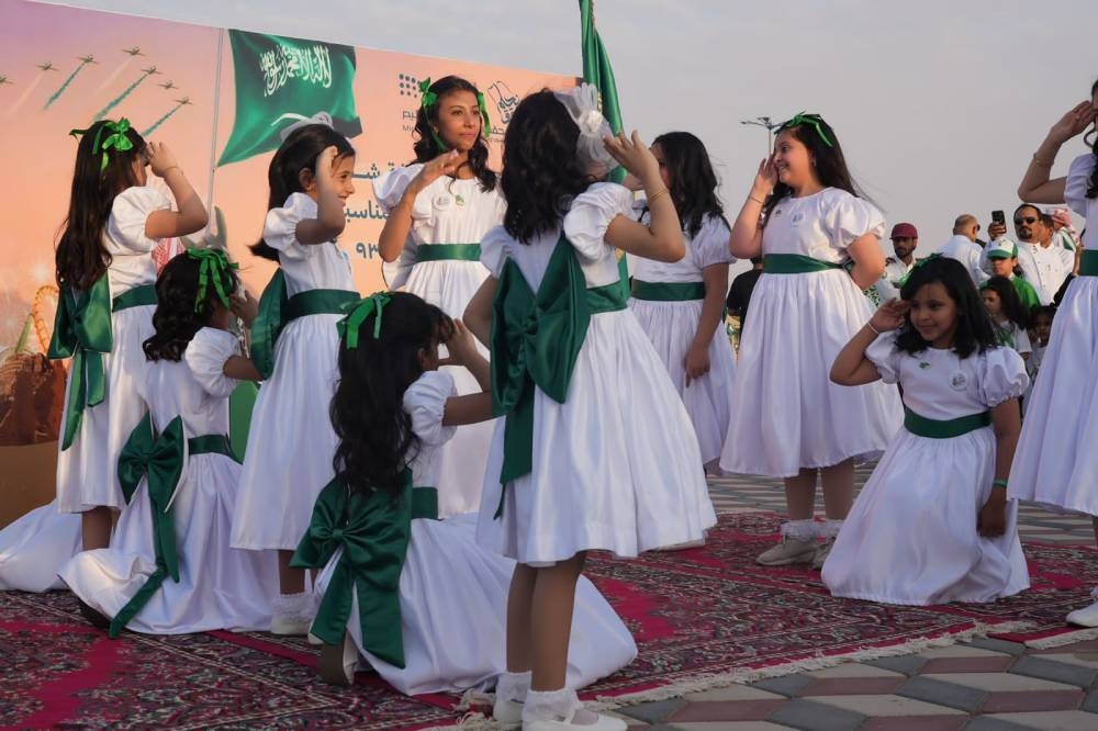 وتراقصت قلوب الأطفال فرحا وابتهاجا باليوم الوطني 93، فحملوا الأعلام عاليا بين أياديهم لترفف بكل شموخ وعزة، وهم يرتدون أجمل الملابس المحبوكة بلون العلم،لتظل الطفولة بعفويتها وبراءتها، ورغبتها في محاكاة كل مناسبة.