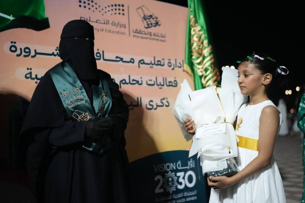 واختتمت الفعاليات بالعرضة السعودية على مسرح كلية العلوم والآداب حيث عاش الجميع فرحة اليوم الوطني، لكن تعبيرات الأطفال تكتسب أهمية خاصة، ووجودهم في الاحتفالات لا يعني المشاركة في المناسبة فحسب، إنما فرصة لترسيخ معاني الولاء والانتماء في نفوسهم وتوثيق ارتباطهم بالوطن الذي يتعلق به حاضرهم ومستقبلهم.