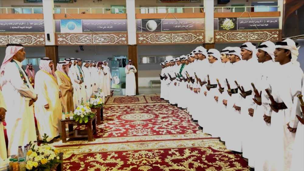 بعدها قدم نخبة من طلاب ثانوية نجران أوبريتا وطنيا غنائيا من كلمات شاعر التعليم نبهان الودعاني.