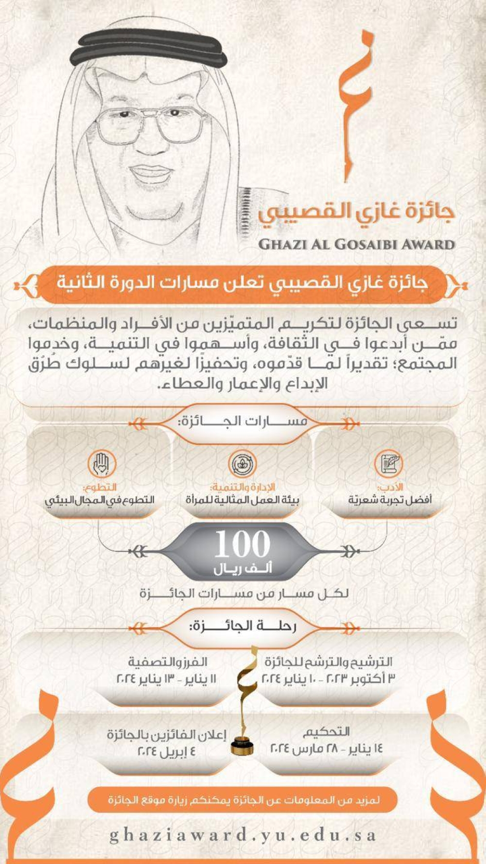 من جهته، أوضح الدكتور عمر السيف، أمين عام الجائزة، أن الهيئة أقرَّت مقترح مسارات الفروع التي رفعتها اللجنة العلمية، حيث خُصص فرع الأدب لأفضل تجربة شعرية، وذلك لمواكبة «عام الشعر العربي»، الذي عُرف به القصيبي، وتزخر السعودية بشعراء مبدعين بأعمال تتسم بالنضج والجودة لم ينالوا حظهم من التكريم، وتتوج الجائزة جهودهم، وتمنحهم المكانة التي يستحقونها.