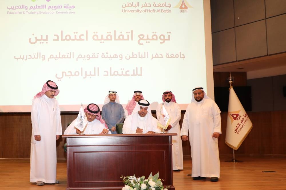 وقّعت جامعة حفر الباطن اتفاقية مع هيئة تقويم التعليم والتدريب ممثلة في المركز الوطني للتقويم والاعتماد الأكاديمي «اعتماد» وذلك لاعتماد 6 برامج أكاديمية للجامعة.