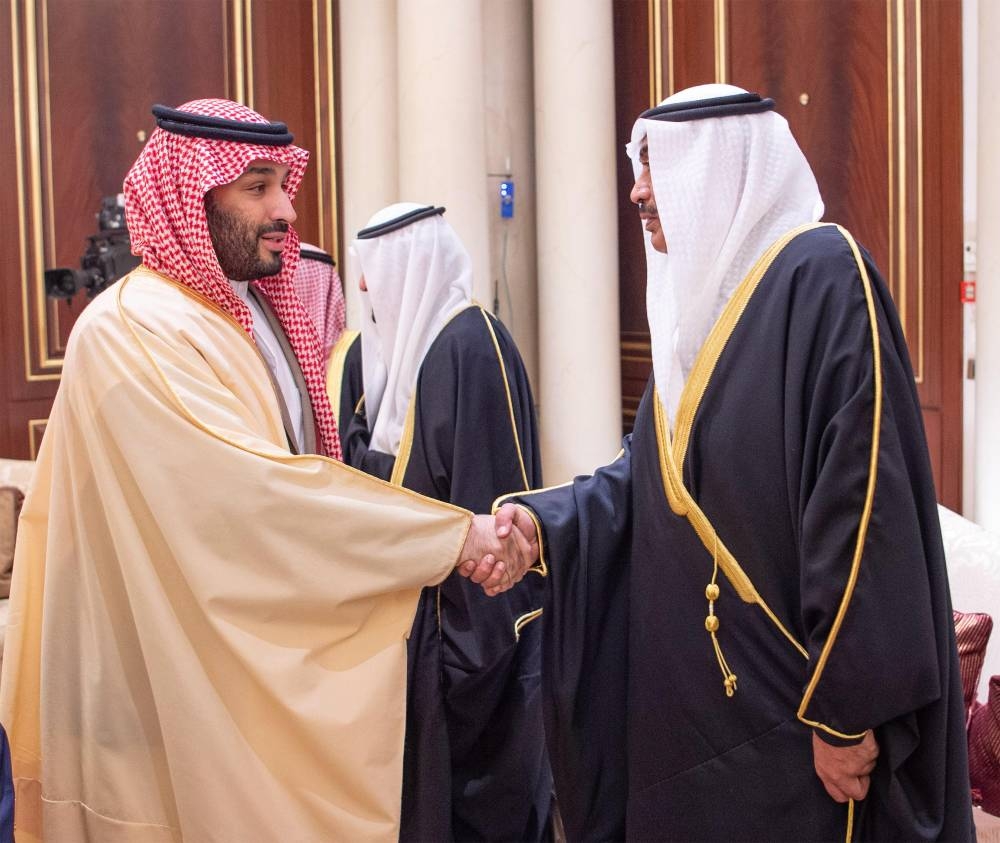 وكان في استقبال ولي العهد بالمطار الأميري الشيخ مشعل الأحمد الجابر الصباح، أمير دولة الكويت، الذي أعرب عن جزيل شكره وتقديره لولي العهد على ما أبداه من مشاعر أخوية صادقة تجاه دولة الكويت، وشعبها في مصابهم.