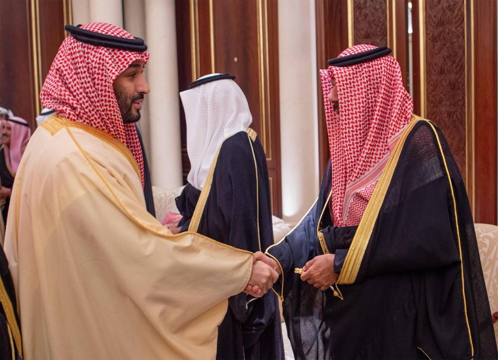 ورافق ولي العهد كل من: الأمير عبدالعزيز بن سلمان بن عبدالعزيز، وزير الطاقة، والأمير سلطان بن سعد بن خالد، سفير خادم الحرمين الشريفين لدى دولة الكويت، والأمير تركي بن محمد بن فهد بن عبدالعزيز، وزير الدولة عضو مجلس الوزراء، والأمير عبدالعزيز بن تركي بن فيصل بن عبدالعزيز، وزير الرياضة، والأمير عبدالعزيز بن سعود بن نايف بن عبدالعزيز، وزير الداخلية، والأمير عبدالله بن بندر بن عبدالعزيز، وزير الحرس الوطني، والأمير فيصل بن فرحان بن عبدالله، وزير الخارجية، وسكرتير ولي العهد الدكتور بندر بن عبيد الرشيد، ومدير المكتب الخاص لولي العهد بدر العساكر، ونائب رئيس المراسم الملكية راكان الطبيشي.