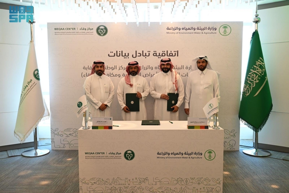 وقع المركز الوطني للوقاية من الآفات النباتية والأمراض الحيوانية ومكافحتها «وقاء» بالرياض، اتفاقية تبادل البيانات مع وزارة البيئة والمياه والزراعة؛ بهدف تمكين الجانبين من المعلومات بما يسهم في تطوير الخدمات والاستفادة منها وبناء علاقة تكاملية.