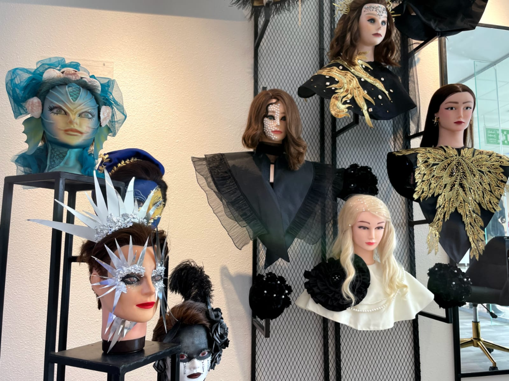 وافتتح المعرض بعرض أزياء من تصميم وتنفيذ متدربات قسم تقنية تصميم وتصنيع الأزياء، كما احتوى المعرض على عرض لأعمال متدربات قسم تقنية التزيين والتجميل في قص وتسريح الشعر والمكياج الإعلامي.
