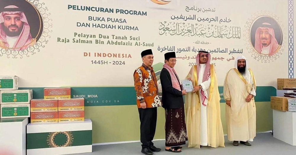 دشّنت وزارة الشؤون الإسلامية والدعوة والإرشاد، ممثلة بالملحقية الدينية في سفارة المملكة بإندونيسيا أمس، برامج هدية خادم الحرمين الشريفين لتوزيع التمور وتفطير الصائمين لهذا العام 1445هـ، وذلك بالعاصمة الإندونيسية جاكرتا، والتي تتضمن (20) طنًّا من التمور، إضافةً لبرامج التفطير التي يستفيد منها قرابة (40) ألف مستفيد، بحضور سفير خادم الحرمين الشريفين لدى جمهورية إندونيسيا فيصل بن عبدالله العامودي، ونائب وزير الشؤون الدينية الإندونيسي سيف الرحمت داسوكي، والملحق الديني أحمد بن علي الحازمي، وعدد من سفراء الدول العربية والإسلامية.