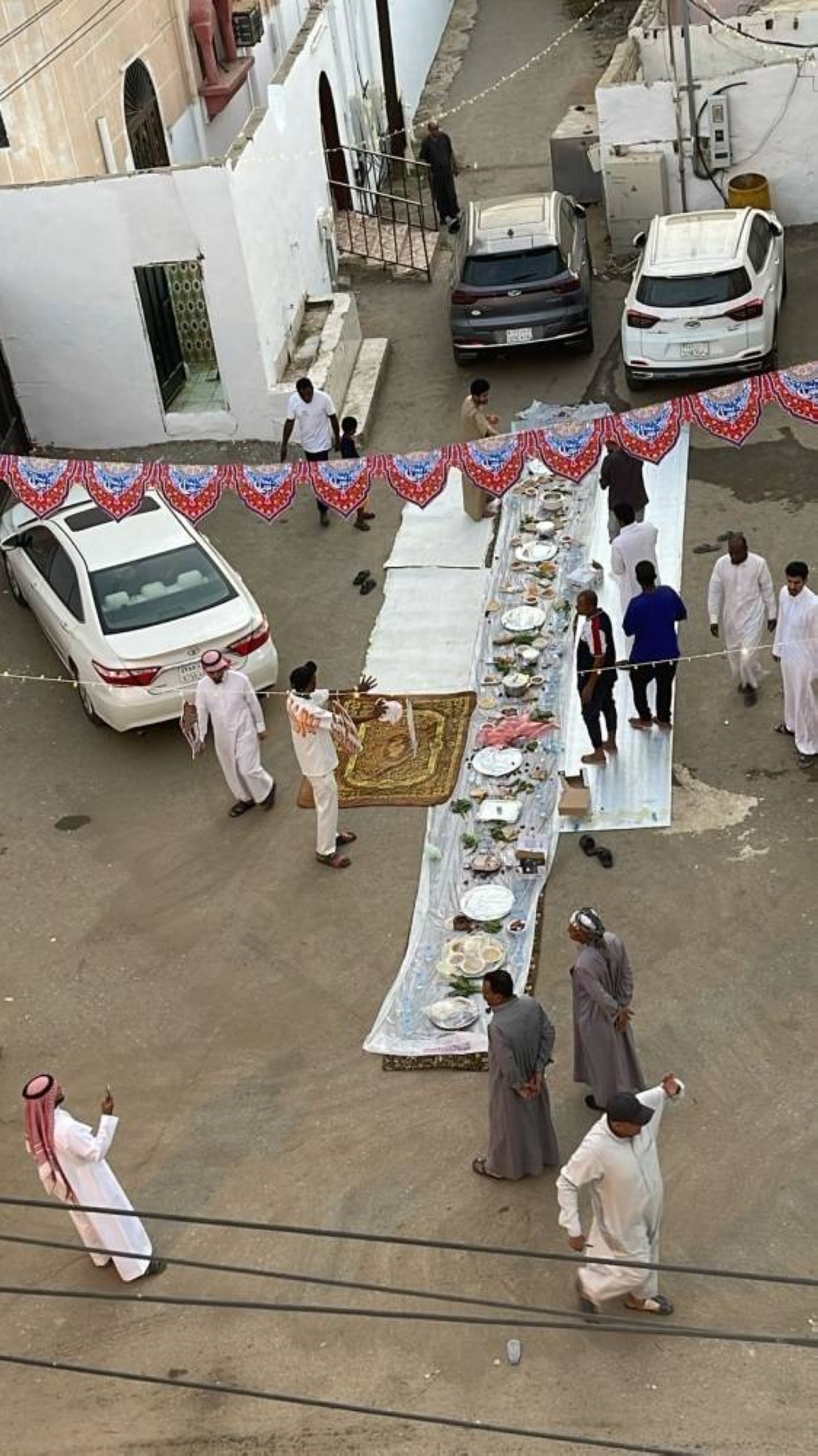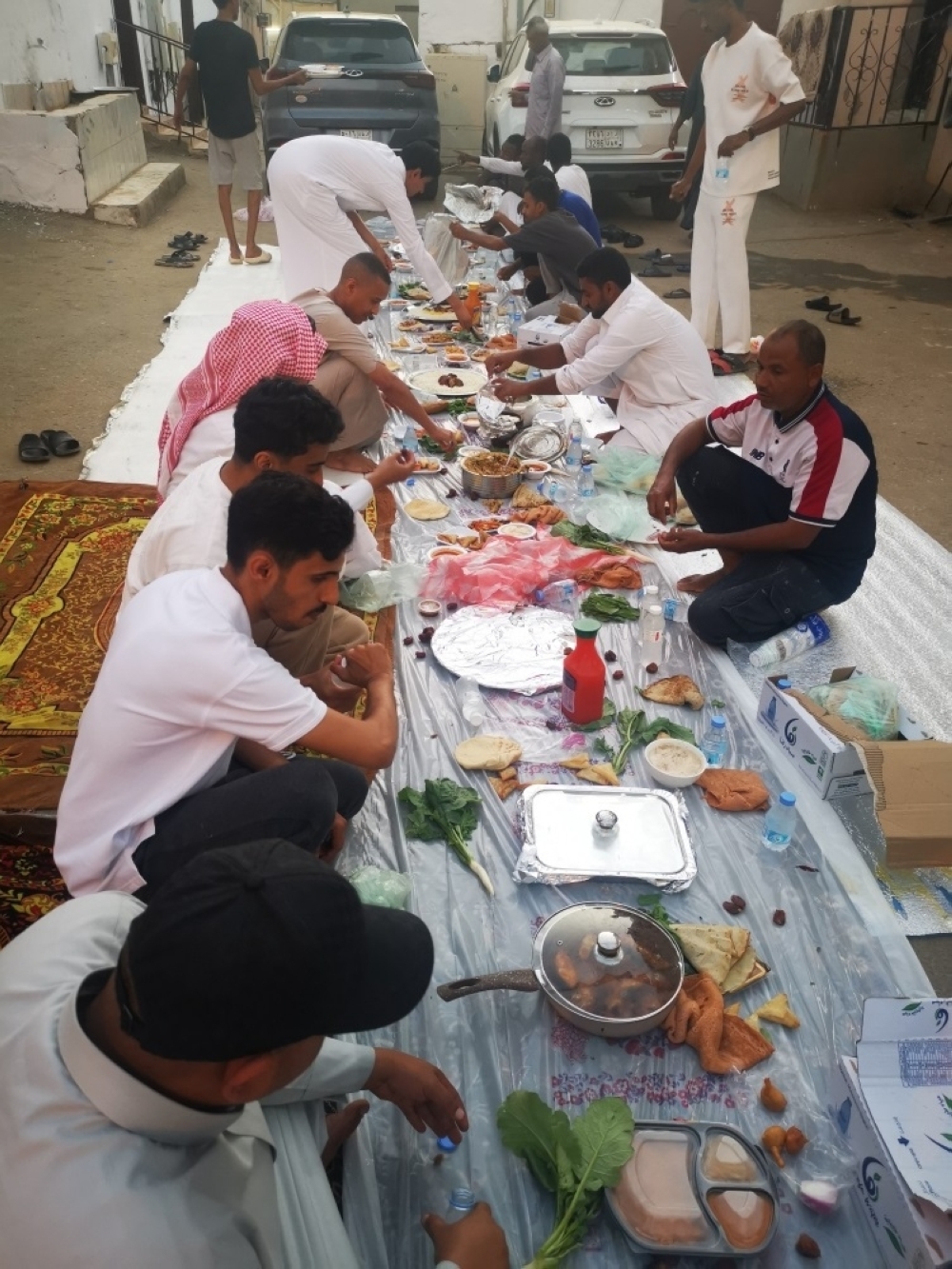 وتحفل عديد من الأحياء بمنطقة جازان بتجهيزات موائد الإفطار الجماعي فلا يكاد يخلو حي من مثل هذه المظاهر الرمضانية التي تعيدنا إلى أيام الألفة والعادات والتقاليد القديمة المتوارثة حيث يحمل الصائمون قبيل أذان المغرب وجبات إفطار ربات البيوت كمشاركات في إعداد الوجبات التي تمتاز بها السفرة الجازانية في رمضان.