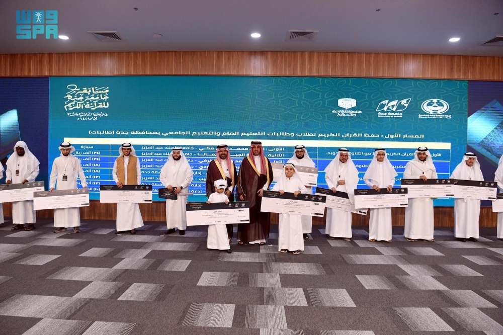 كرّم محافظ جدة، الأمير سعود بن عبدالله بن جلوي، طلاب وطالبات الجامعات والإدارة العامة للتعليم بجدة، الفائزين في مسابقة جامعة جدة للقرآن الكريم في نسختها الـ15، بحضور رئيس الجامعة، الدكتور عدنان الحميدان، وعدد من قيادات الجامعة.