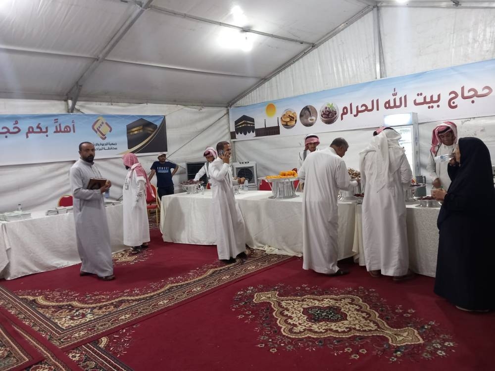 وذكر القحطاني أن الخيمة مجهزة بأفضل وسائل الضيافة حيث شملت القهوة، والشاي، والتمر والحلا والمعمول والمياه المبردة، والعصائر لضمان راحة الزوار مشيرا أن الجمعية تقوم باستقبال الاستفسارات الدينية من الحجاج، حيث يتم الرد عليها من قبل دعاة مؤهلين.