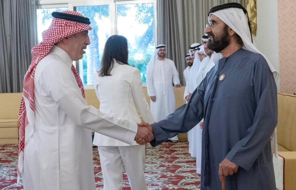 ورحب نائب رئيس الإمارات، خلال الاستقبال، بسفير خادم الحرمين الشريفين، متمنيا له التوفيق والنجاح في مهمته، بينما نقل السفير له تحيات خادم الحرمين الشريفين الملك سلمان بن عبدالعزيز، وولي العهد رئيس مجلس الوزراء الأمير محمد بن سلمان، وتمنياتهما لحكومة وشعب دولة الإمارات الشقيق بدوام التقدم والازدهار.