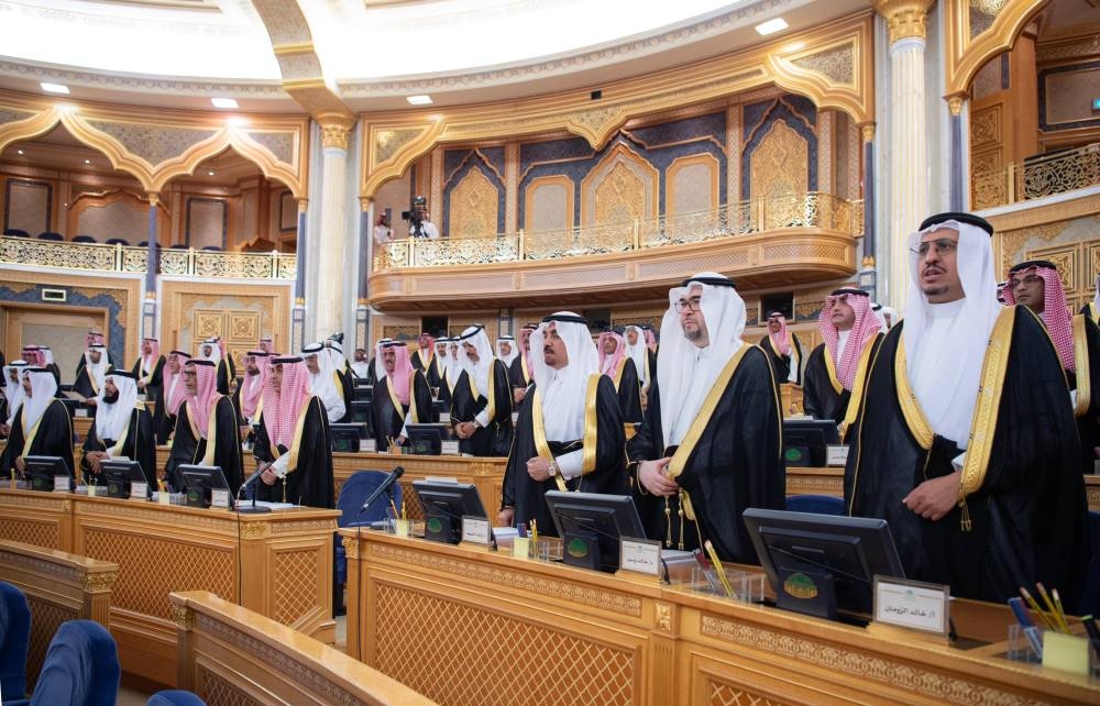 وتوجه ولي العهد إلى قاعة الجلسات، حيث تشرف رئيس مجلس الشورى بتلاوة القسم أمام ولي العهد وردد أعضاء وعضوات المجلس القسم. بعد ذلك التقطت الصور التذكارية لولي العهد مع أعضاء مجلس الشورى.