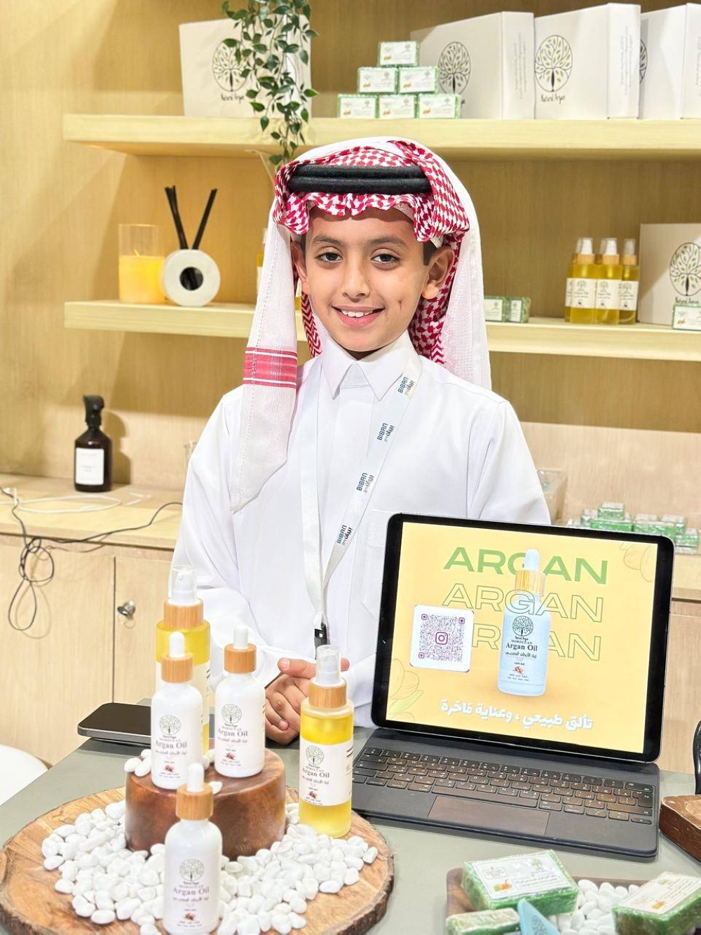 وقد نجح التاجر الصغير في جذب زوار الملتقى، وذلك بخبرته المتقنة، وأسلوبه الجاذب، وحيويته، وحديثه البارع عن فكرة متجر والدته، المتخصص في الزيوت المرطبة؛ ليشعل بذلك الحماسة في قلوب الزائرين، ويؤكد على عدم أهمية العمر في مجالات ريادة الأعمال.