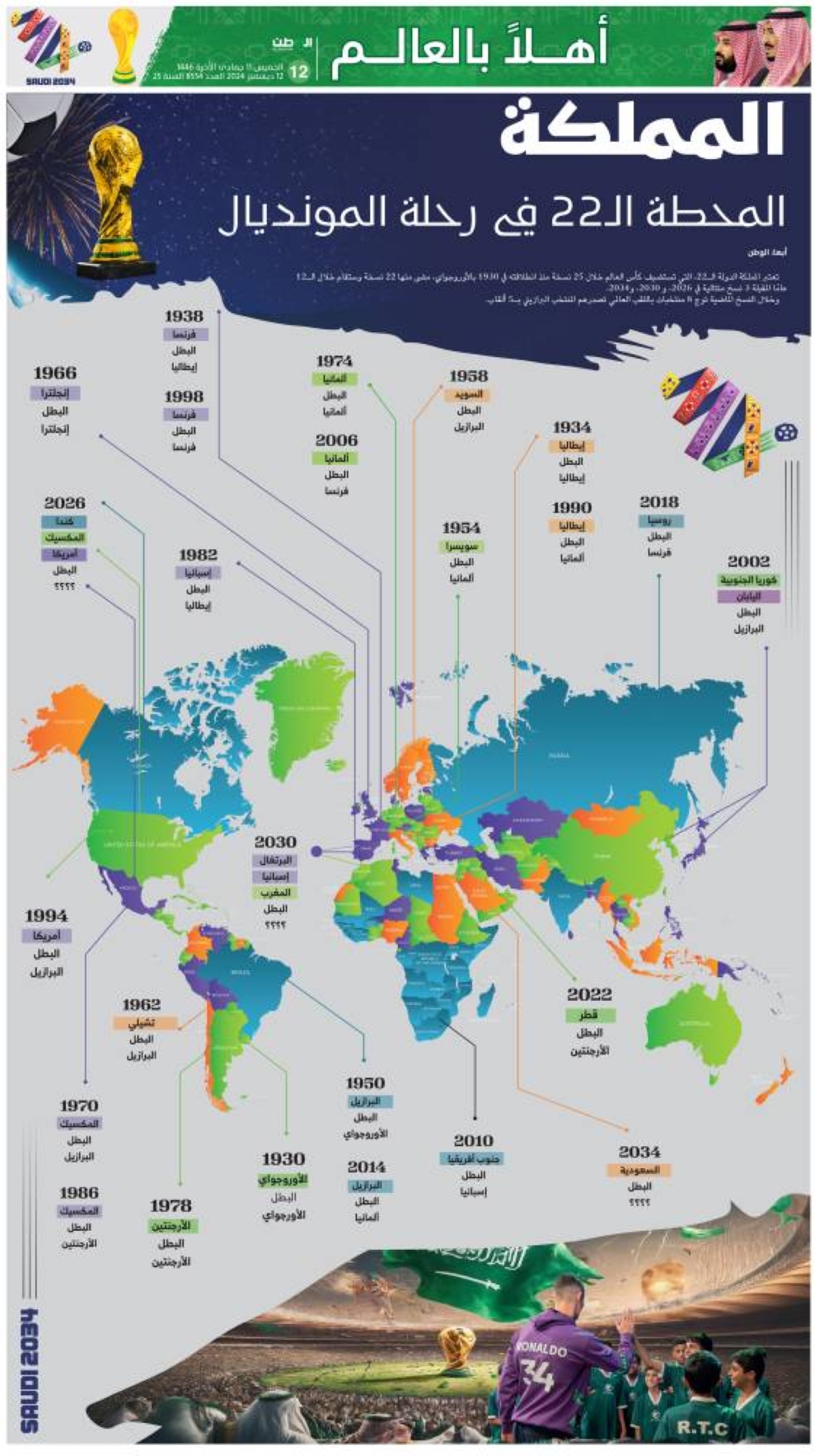وخلال النسخ الماضية توج 8 منتخبات باللقب العالمي تصدرهم المنتخب البرازيلي بـ5 ألقاب.